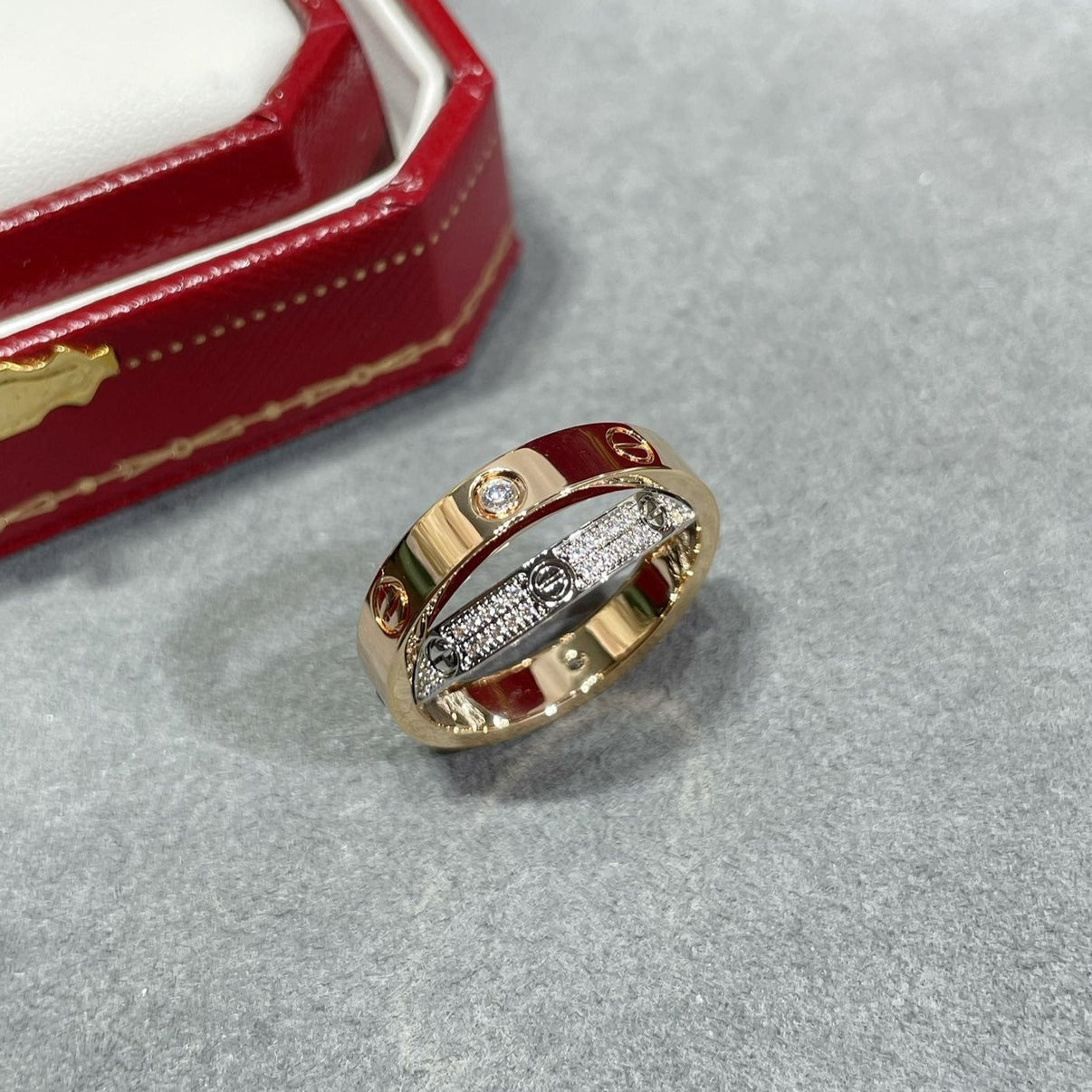 [Globe Jewelers]LOVE PINK GOLD SILVER DIAMOND DOUBLE RING
